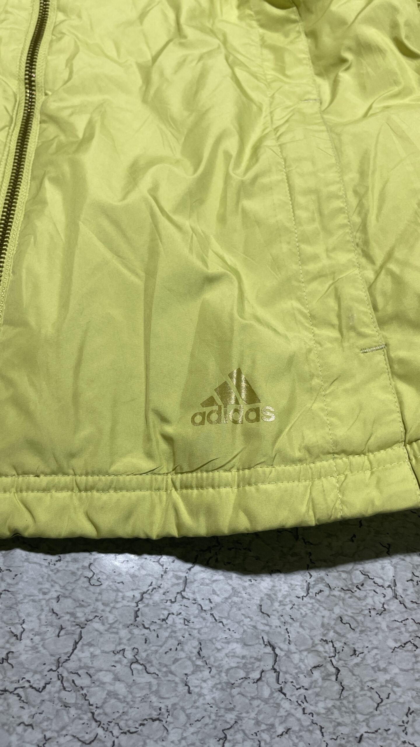 Original Adidas quilted winter jacket in bright yellow color. Features a padded warm design with hood, front zip closure, adjustable cuffs, and side pockets. Lightweight yet cozyβ€”perfect for winter wear, travel, casual styling, and outdoor use. Stylish fitted cut with Adidas logo branding near hem.