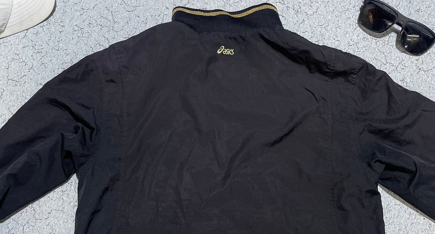 Asics women track jacket black and gold size m