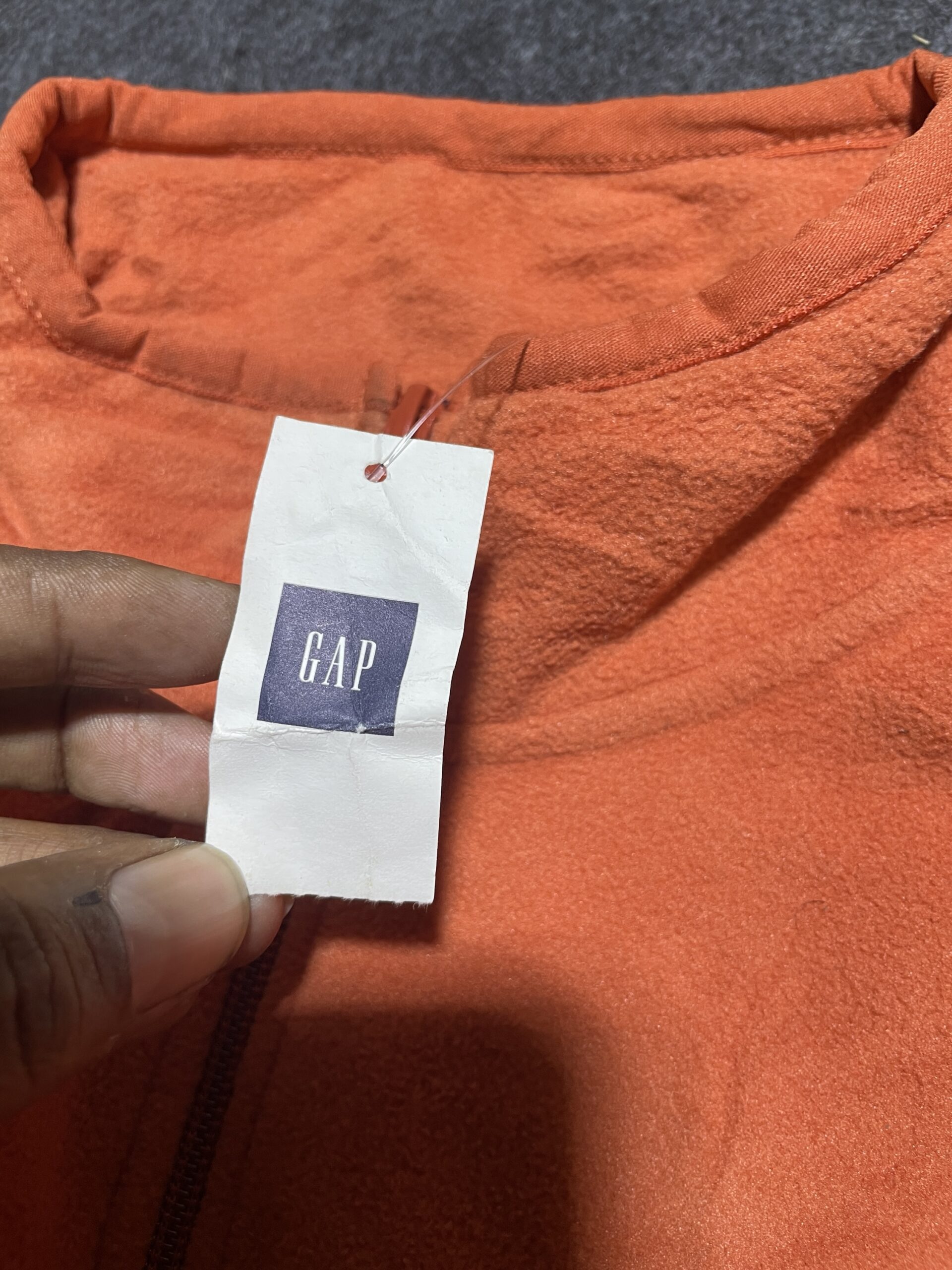 Gap Fleece in Orange — Size S. This carefully curated pre-loved piece from ThriftRise is inspected and cleaned before listing.
