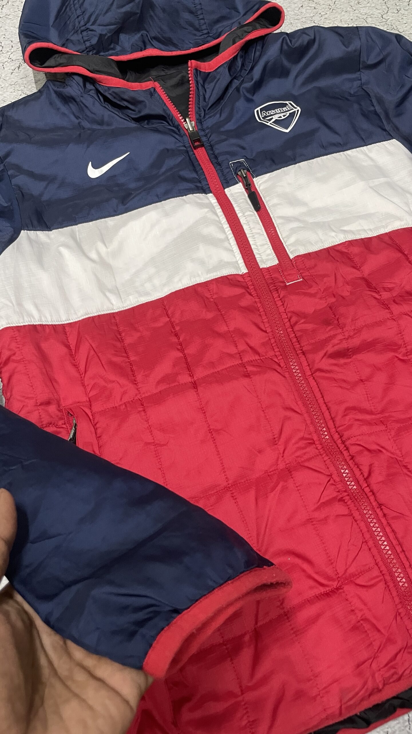 Product Name: Nike Ă Arsenal FC Puffer Jacket (Hooded, Size L)
